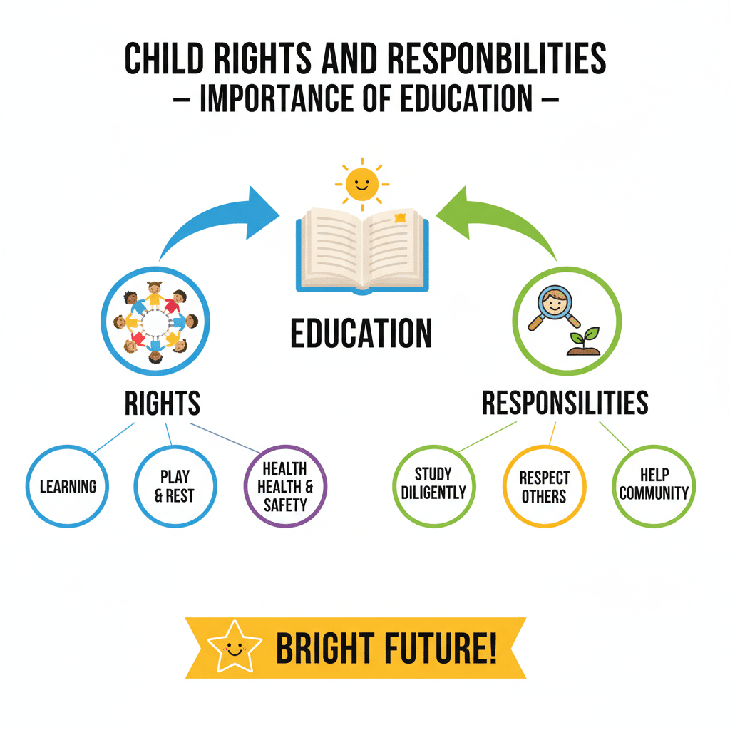 ವಿಶ್ವಸಂಸ್ಥೆಯ ಮಕ್ಕಳ ಒಡಂಬಡಿಕೆಯ ಬಗ್ಗೆ ನಿಮಗೆ ತಿಳಿದಿರಲಿ. ಈ ಒಡಂಬಡಿಕೆಯು ಮಕ್ಕಳಾದ ನಿಮ್ಮ ಬದುಕುವ ಹಕ್ಕು, ರಕ್ಷಣೆಯ ಹಕ್ಕು, ಅಭಿವೃದ್ಧಿ ಹೊಂದುವ ಹಕ್ಕು ಮತ್ತು ಭಾಗವಹಿಸುವ ಹಕ್ಕುಗಳನ್ನು ಒಳಗೊಂಡಿದೆ. ಇವುಗಳನ್ನು ತಿಳಿದುಕೊಂಡು ನೀವು ಅನುಭವಿಸಬೇಕು. ಶಿಕ್ಷಣದ ಮಹತ್ವದ ಬಗ್ಗೆ ತಿಳಿದಿರಲಿ. ಶಿಕ್ಷಣ ಕೇವಲ ಉದ್ಯೋಗ ಪಡೆಯಲು ಮಾತ್ರ ಸೀಮಿತವಾಗಿಲ್ಲ. ಸಮಾಜದಲ್ಲಿ ಉತ್ತಮ ವ್ಯಕ್ತಿಯಾಗಿ ಬದುಕಲು ಮತ್ತು ಸಮಾಜಕ್ಕೆ ಕೊಡುಗೆ ನೀಡಲು ಶಿಕ್ಷಣ ಬಹಳ ಮುಖ್ಯ.