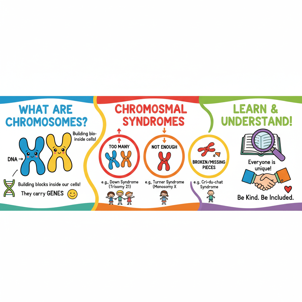 ನಮಸ್ತೆ ಪ್ರೀತಿಯ ಮಕ್ಕಳೇ! ಇಂದು ನಾವು ವರ್ಣತಂತುಗಳ ಬಗ್ಗೆ ತಿಳಿಯೋಣ. ವರ್ಣತಂತುಗಳು ಜೀವಕೋಶದ ನ್ಯೂಕ್ಲಿಯಸ್ನಲ್ಲಿ ಕಂಡುಬರುತ್ತವೆ, ನಮ್ಮ ಜೀವಕೋಶಗಳ ನಿಯಂತ್ರಣ ಕೊಠಡಿಯಂತೆ. ಪ್ರತಿ ಜೀವಿಗೂ ಒಂದು ನಿರ್ದಿಷ್ಟ ಸಂಖ್ಯೆಯ ವರ್ಣತಂತುಗಳಿವೆ. ನಿಮಗೆ ಗೊತ್ತಾ, ಮನುಷ್ಯರಲ್ಲಿ ಸಾಮಾನ್ಯವಾಗಿ 46 ವರ್ಣತಂತುಗಳಿವೆ!