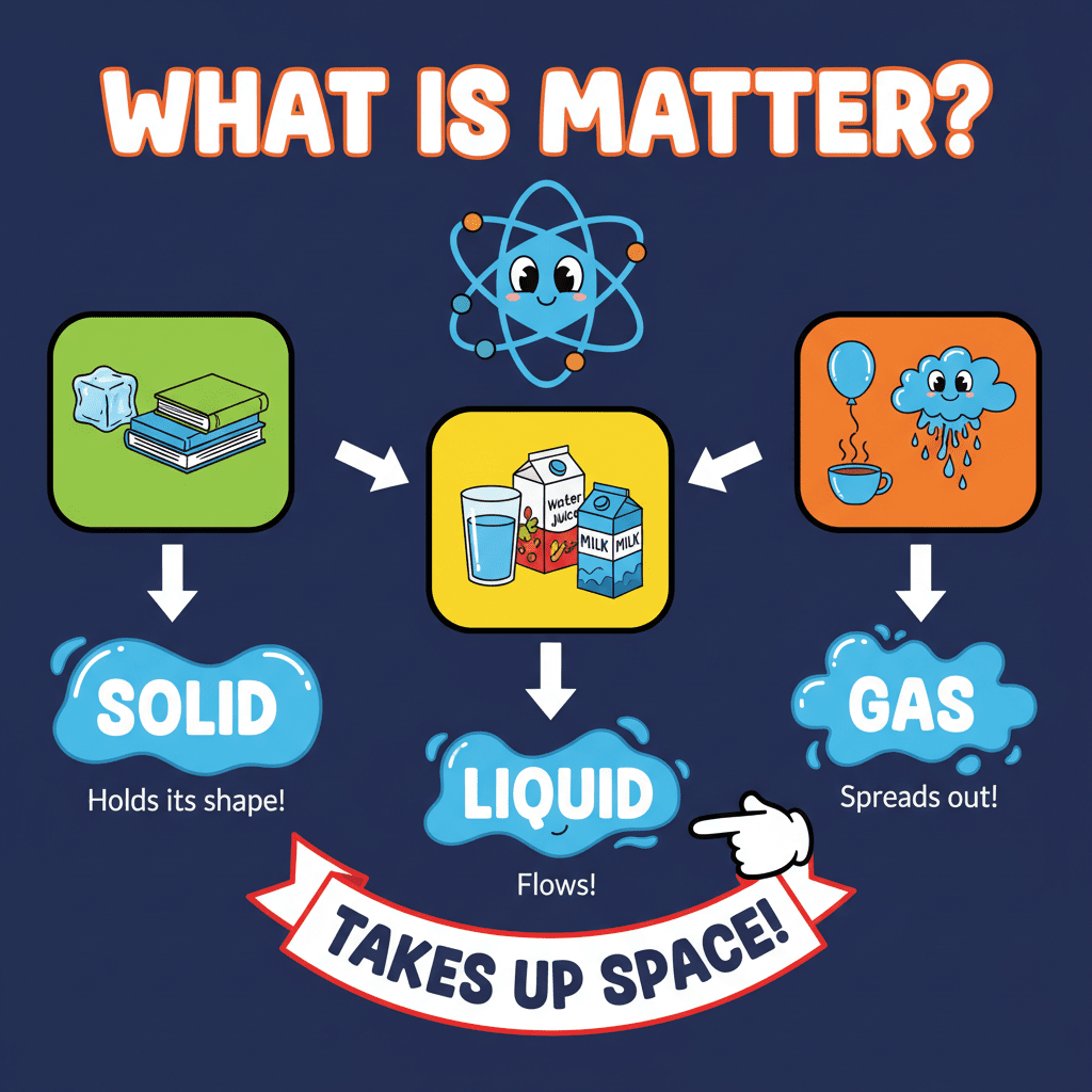 Alright everyone, let's dive into the fascinating world of matter! We already know that matter exists in three main forms: solid, liquid, and gas. Can anyone give me an example of each?