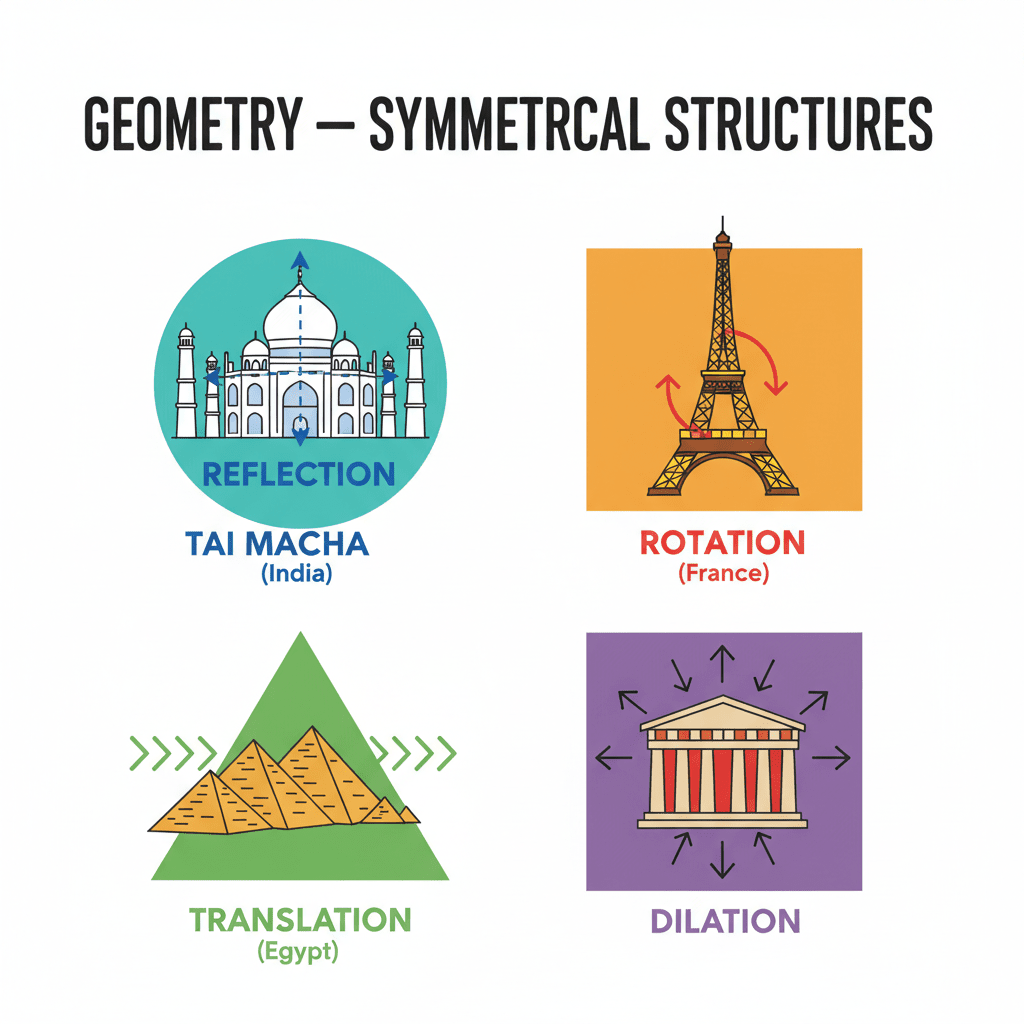 Alright everyone, let's get our brains warmed up with a fun topic: symmetry! Think about some famous landmarks like the Charminar, India Gate, or the Red Fort. What do you notice about their shapes? That's right, they all have symmetry! In your notebooks, can you quickly sketch each of these and draw where you think the line of symmetry might be?