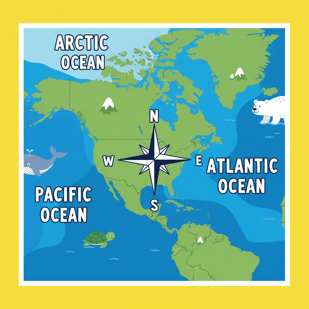 Now, let's talk about the big bodies of water that surround North America. Can anyone name the oceans that border this continent? Exactly! We're going to label the Pacific, Atlantic, and Arctic Oceans on our maps.